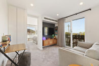 * High ceilings with recessed LED lighting, engineered timber flooring and white plantation shutters